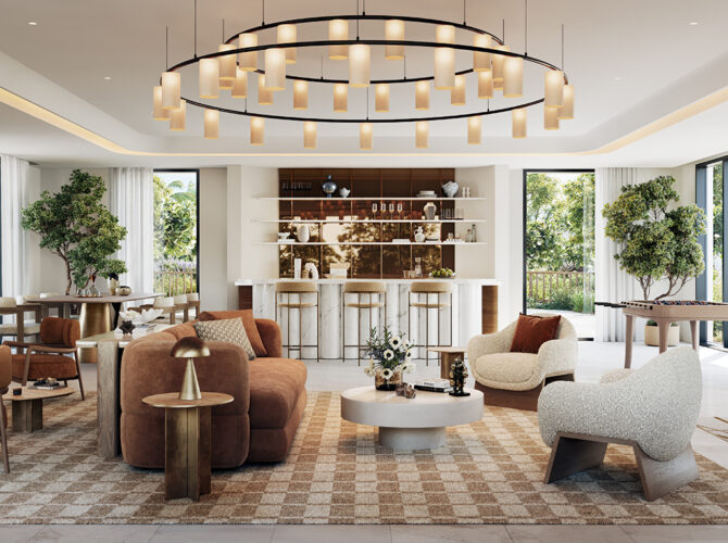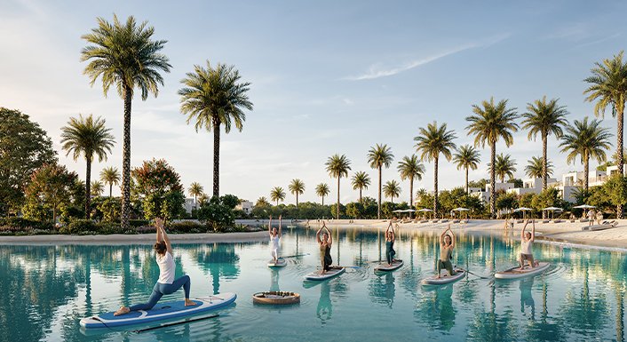 Envisioned as an exclusive retreat lifestyle, where green landscapes come together to form a vibrant and sustainable community. Inspired by nature-led living, the masterplan weaves meandering pathways, lush green spaces, tranquil courtyards, and cascading water features into a harmonious environment that inspires movement, calm, and connection with the outdoors. Integrated nature trails, fitness areas, and meditation spaces support a holistic way of life.