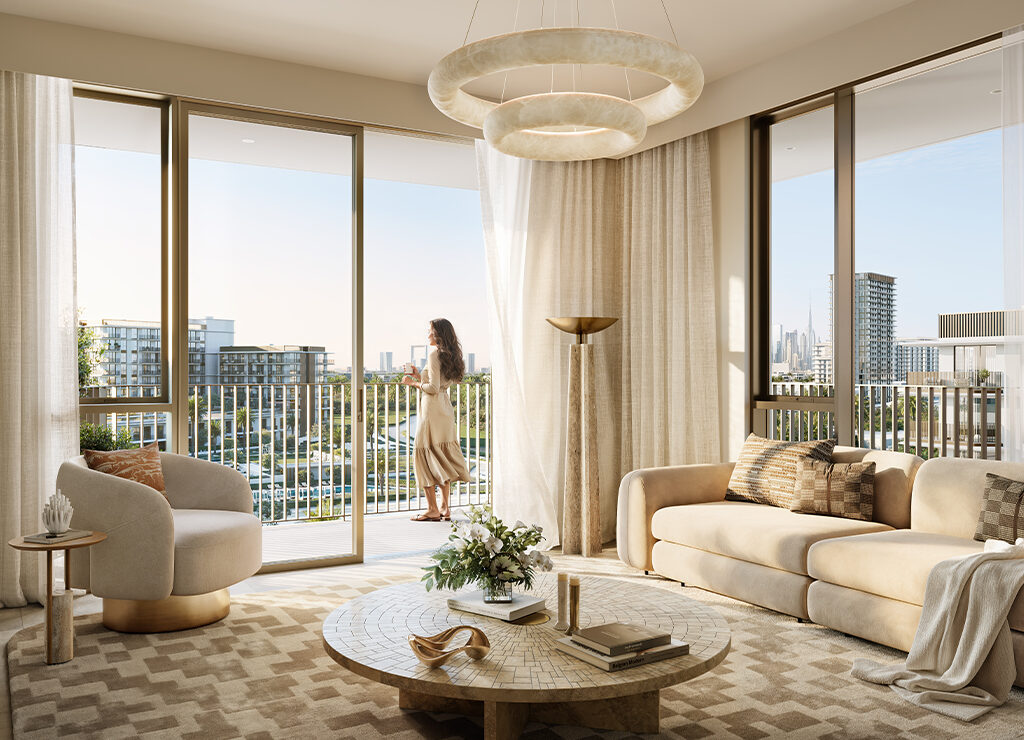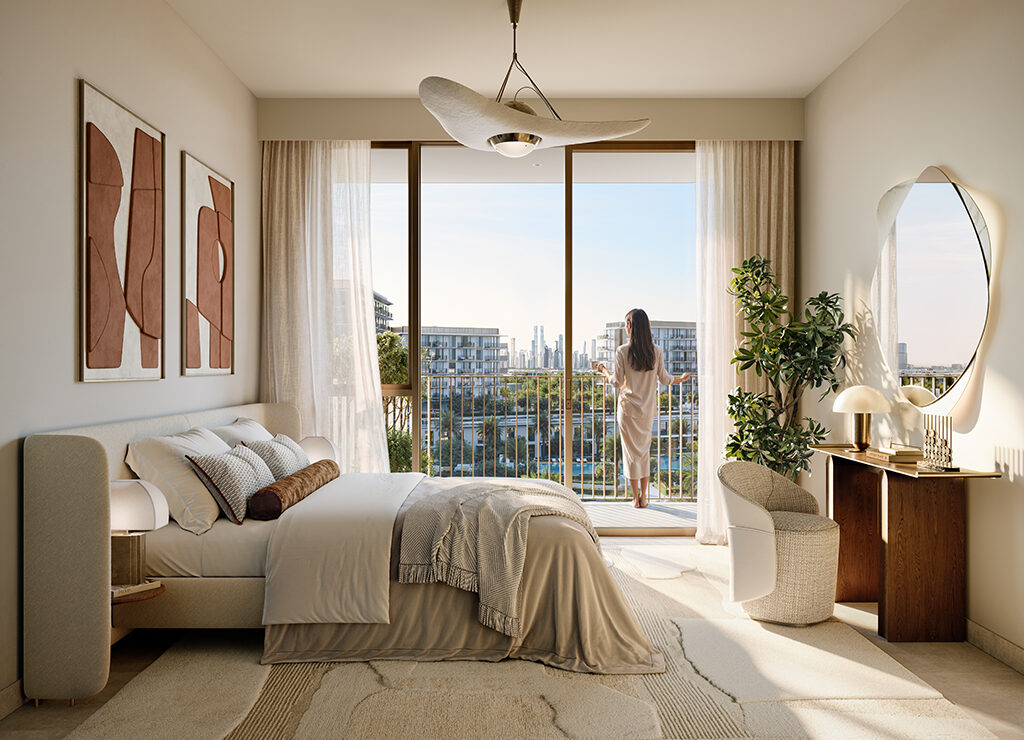Inside, residences mirror the calm sophistication of their surroundings. Natural tones, warm textures, and subtle metallic accents create a peaceful, resort-inspired ambience. Sunlit spaces flow effortlessly, connecting indoor living with tranquil outdoor views, while every detail, from finishes to furnishings, is curated to offer a private, refined escape along the marina.